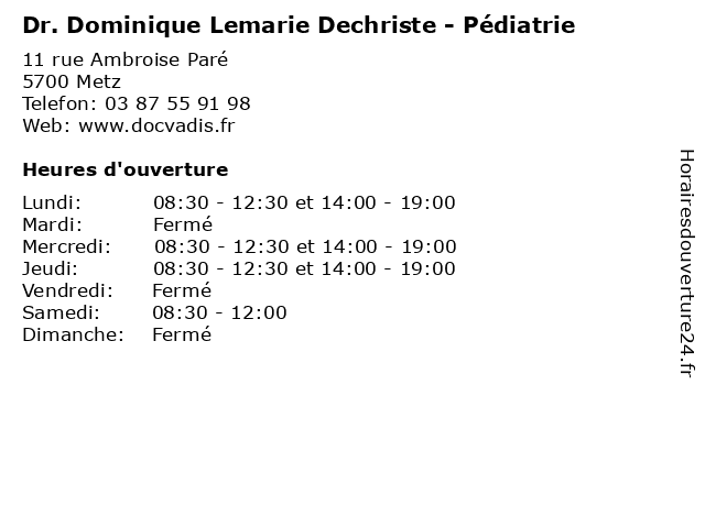 | Mercredi | 08:30-12:30 et 14:00-19:00 |