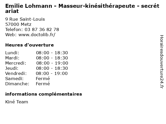 Termes de recherche pour Emilie Lohmann - Masseur-kinésithérapeute - secrétariat:medecine, emilie, secretariat, docteur, médecin, masseur, kinésithérapeute, lohmann |