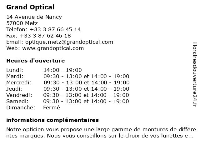 | Mercredi | 09:30-13:00 et 14:00-19:00 |
