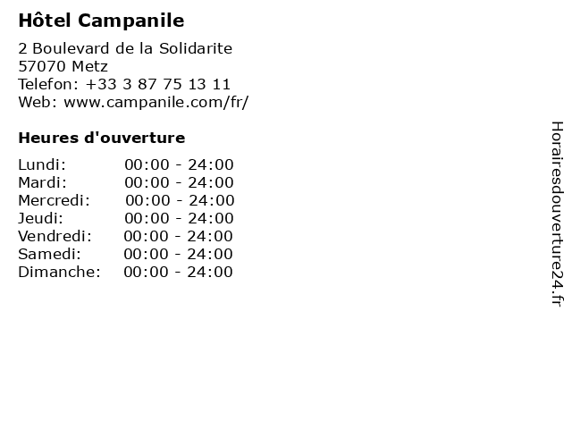 | Samedi | 00:00-24:00 |