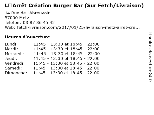 Termes de recherche pour L’Arrêt Création Burger Bar (Sur Fetch/Livraison):restaurant, sur, bar, burger, service, nourriture, boisson, création, fetch, fetch/livraison, l’arrêt |