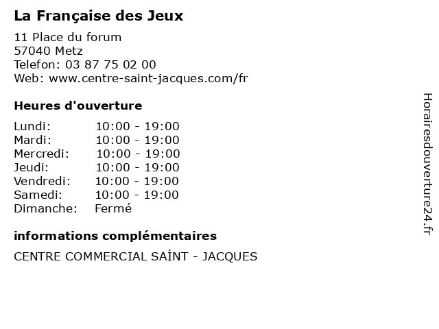 | Horaires d'ouverture | ||
