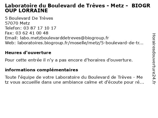 Termes de recherche pour Laboratoire du Boulevard de Trèves - Metz - BIOGROUP LORRAINE:du, de, metz, laboratoire, boulevard, lorraine, trèves, biogroup, dépistages, laboratoire de diagnostic |