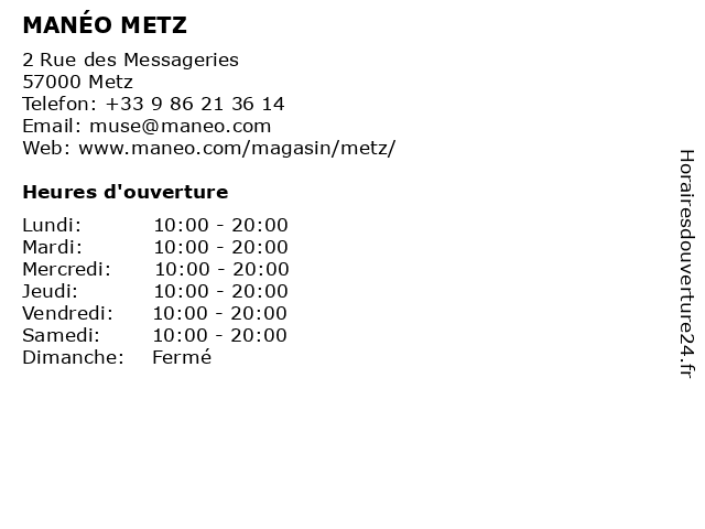 | Lundi | 10:00-20:00 |