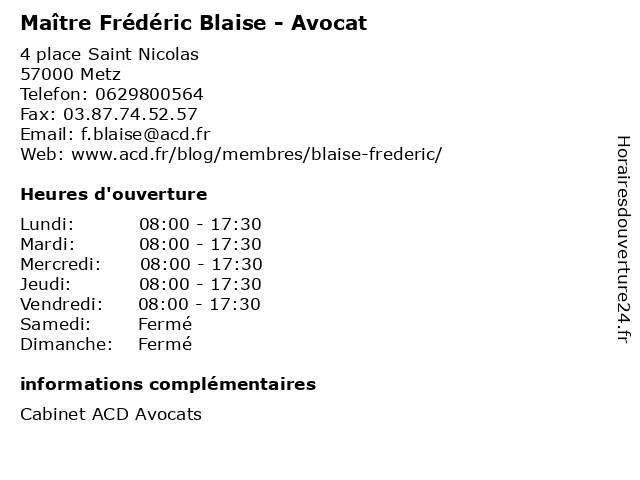 1 Maître Frédéric Moitry - Avocat (Distance: 0,15 km) 2 Bis rue Maurice Barrès, 57000 Metz avocat, avocats, cabinet, conseils, contentieux, frédéric, juridique, justice, litiges, maître, moitry, services 2 Maître Frédéric Beaupré - Avocat (Distance: 0,17 km) 39 Place Saint Thiébault, 57000 Metz avocat, avocats, beaupré, cabinet, conseils, contentieux, frédéric, juridique, justice, litiges, maître, services 3 Office Notarial Jean-Marie et Frédéric Frisch (Distance: 0,32 km) 2 bis Rue Châtillon, 57000 Metz et, frisch, frédéric, jean, marie, notaire, notarial, office 4 Dr Frédéric Thibault - Chirurgien urologue (Distance: 1,21 km) 2 rue Belle Isle, 57045 Metz andrologie, andrologue, belle, chirurgien, dr, frédéric, hôpital, isle, thibault, urologique, urologue 5 Dr Frédéric Heliot - Cardiologue (Distance: 5,78 km) 1 Allée du Château, 57245 Ars-Laquenexy cardiologue, chr, de, docteur, dr, frédéric, generaliste, heliot, hôpital, medical, mercy, metz, soin, thionville 6 Dr Frédéric Spatz - Cardiologue (Distance: 5,78 km) 1 Allée du Château, 57245 Ars-Laquenexy cardiologue, chr, de, docteur, dr, frédéric, generaliste, hôpital, medical, mercy, metz, soin, spatz, thionville |