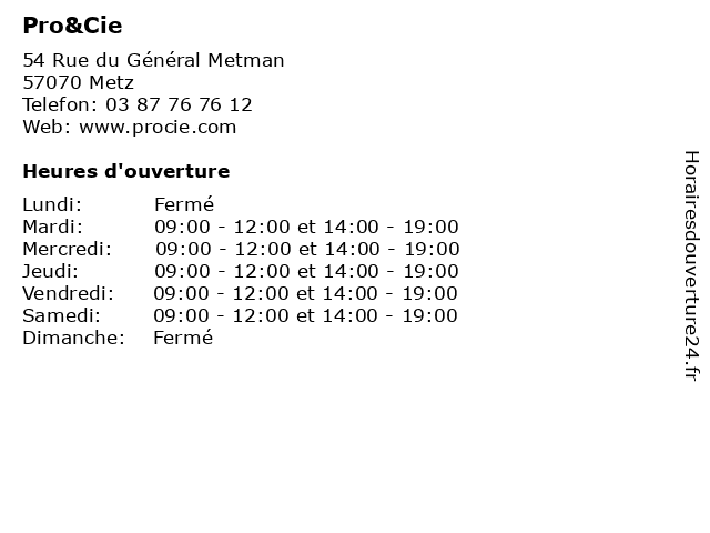 | Samedi | 09:00-12:00 et 14:00-19:00 |