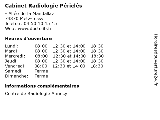 | Lundi | 08:00-12:30 et 14:00-18:30 |