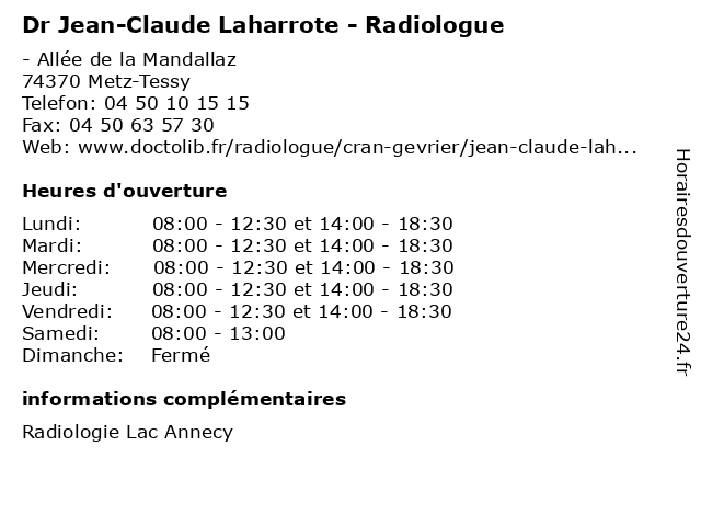 | Lundi | 08:00-12:30 et 14:00-18:30 |
