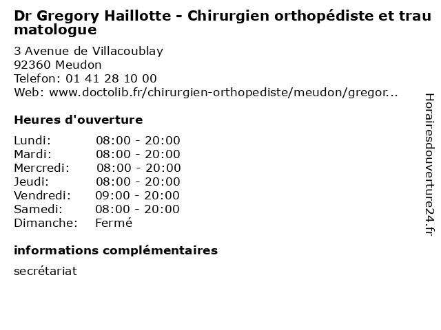 | Lundi | 08:00-20:00 |