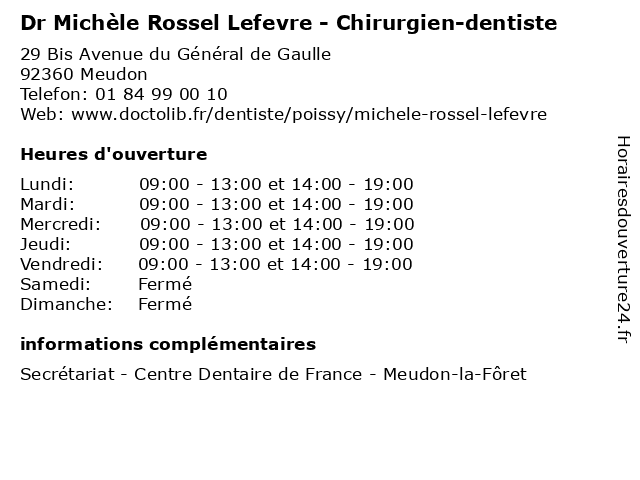 | Lundi | 09:00-13:00 et 14:00-19:00 |