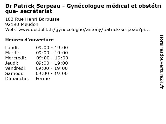 1 Dr Louis-Dominique Van Egroo - Gynécologue - secrétariat (Distance: 0,00 km) 103 Rue Henri Barbusse, 92190 Meudon consultation, docteur, dominique, dr, egroo, gynécologue, louis, med, médecin, médecine, médical, secrétariat, traitement, van 2 Dr Joëlle Lefort-Laurent - Gynécologue médicale et obstétrique (Distance: 0,46 km) 40 Rue de la République, 92190 Meudon consultation, docteur, dr, et, gynécologie, gynécologue, joëlle, laurent, lefort, médicale, obstétrique, santé, secrétariat 3 Dr Beatrice Minault Leprince - Gynécologue médical (Distance: 0,60 km) 85 Rue de la Republique, 92190 Meudon beatrice, docteur, dr, gynecologue, gynécologue, leprince, minault, médical, obstretricien, sante 4 Pépinières Patrick Nicolas (Distance: 0,75 km) 8 Sentier du Clos Madame, 92190 Meudon arbustes, nicolas, patrick, plantes, plants, pépinière, pépinières 6 Dr. Patrick CASIN - Pédiatrie (Consultation sur rendez-vous) (Distance: 1,67 km) 111 Avenue de Verdun, 92130 Issy-les-Moulineaux casin, consultation, docteur, dr., medecins, patrick, pédiatrie, rendez, santé, sur, vous |