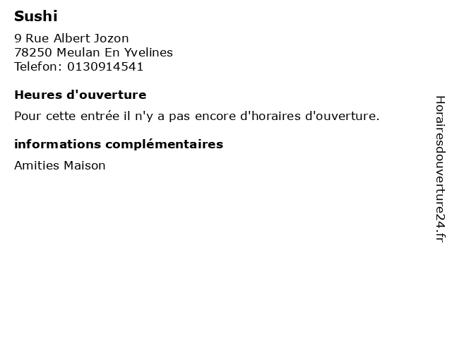 1 MINT Sushi (Distance: 0,23 km) 18 Rue Du Marechal Foch, 78250 Meulan-En-Yvelines asiatique, boissons, cuisine, menus, mint, repas, restaurants, sushi 2 Sushi Les Mureaux (Distance: 0,94 km) 7 Rue De Seine, 78130 Les Mureaux boissons, les, mureaux, restaurants, sushi 3 SUSHI Liao (Distance: 0,96 km) 21 Avenue Félix Faure, 78130 Les Mureaux café, delices, liao, mureaux, restaurants, sushi 4 Sushi Daily (Distance: 4,96 km) - Route Renault, 78410 Flins-sur-Seine daily, japonais, menus, repas, sushi, sushis, traiteur 5 To sushi (Distance: 5,85 km) Rue De Quarante Sous Rd14, 78410 Aubergenville restaurant asiatique, restaurant de sushis, restaurant panasiatique, sushi, to 6 To' Sushi (Distance: 9,61 km) . Route des Quarante Sous, 78410 Aubergenville algues cru, cuit, japonais, maki, poisson, restaurant, riz, sushi, to' |