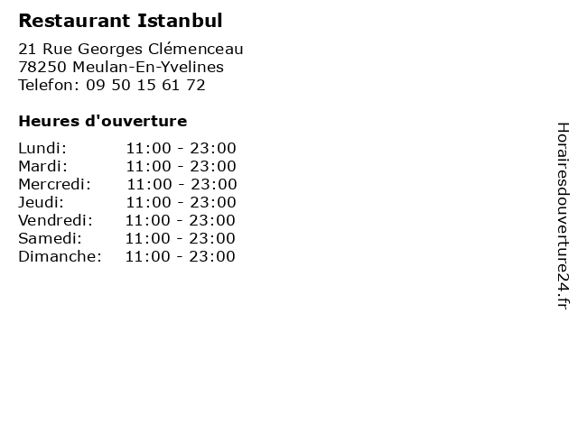 1 Boucherie Istanbul (Distance: 1,88 km) 12 Rue des Frères Latuner, 78130 Les Mureaux alimentation, boucher, boucherie, charcuterie, charcutier, commerce, istanbul, les, mureaux, traiteur, viandes 2 Restaurant M.G Istanbul (Distance: 8,83 km) 8 Avenue Louis Lecoin, 95490 Vaureal burger, halal, istanbul, kebab, m.g, m.g., panini, pizza, restaurant, restauration 3 Special Istanbul (Distance: 10,22 km) Zac Des Cettons, 78570 Chanteloup Les Vignes istanbul, restaurants, special 4 Istanbul Kiss (Distance: 13,25 km) 22 place des Cerclades, 95000 Cergy fast, food, grec, istanbul, kebab, kiss, rapide, restaurant, restauration, sandwich 5 Supermarché Istanbul (Distance: 13,78 km) 10 Parc l'Evesque, 78200 Mantes-la-Jolie alimentation, boissons, exotique, fruits, istanbul, supermarché, viandes 6 Istanbul 63 (Distance: 14,03 km) 2 Rue Auguste Romagne, 78700 Conflans Sainte Honorine 63, istanbul, restaurants |