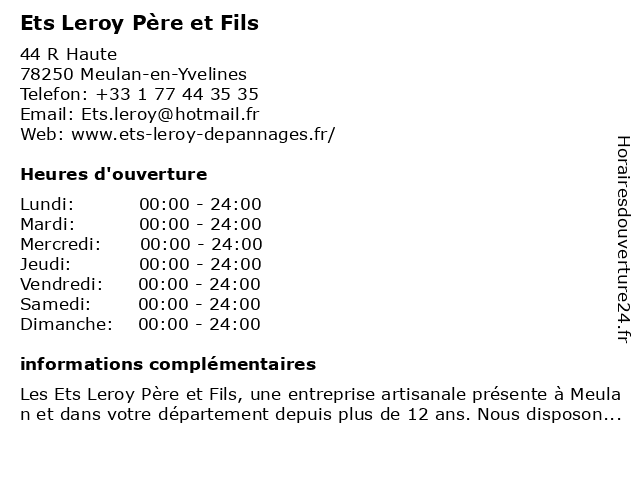 1 Ets Leroy Père et Fils (Distance: 7,54 km) 176 Rue Paul Doumer, 78510 Triel sur seine et, ets, fils, leroy, père 2 Ets Leroy Père et Fils (Distance: 14,81 km) 56 Rue Désiré Clément, 78700 Conflans-Sainte-Honorine et, ets, fils, leroy, père 3 Ets Leroy Père et Fils (Distance: 17,93 km) 5 R Procession, 78100 Saint-Germain-en-Laye et, ets, fils, leroy, père 4 Ets Leroy Père et Fils (Distance: 18,06 km) 59 Rue de la République, 78600 Maisons-Laffitte et, ets, fils, leroy, père 5 Ets Leroy Père et Fils (Distance: 19,41 km) 162 Av République, 78500 Sartrouville et, ets, fils, leroy, père 6 Ets Fontaine Père et Fils (Distance: 0,01 km) 48 Rue Haute, 78250 Meulan-en-Yvelines et, ets, fils, fontaine, père  |