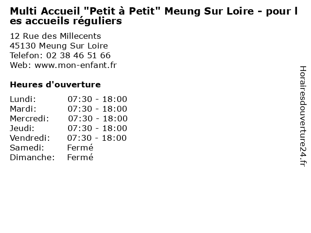 Termes de recherche pour Multi Accueil "Petit à Petit" Meung Sur Loire - pour les accueils réguliers:sur, les, loire, pour, accueil, multi, meung, réguliers, child care, caregivers houses, family home, home care, kindergartens, micro-nurseries, parental home, accueils, "petit, petit" |