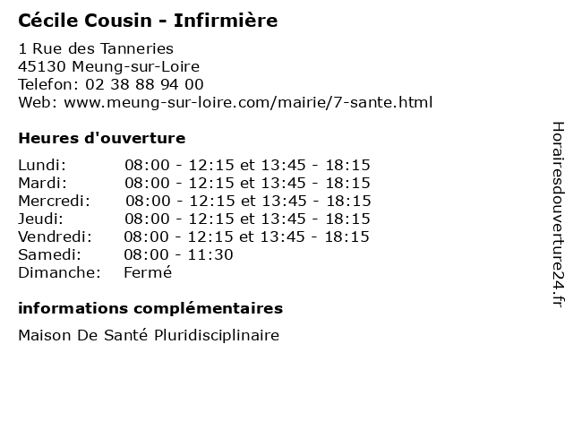 | Lundi | 08:00-12:15 et 13:45-18:15 |