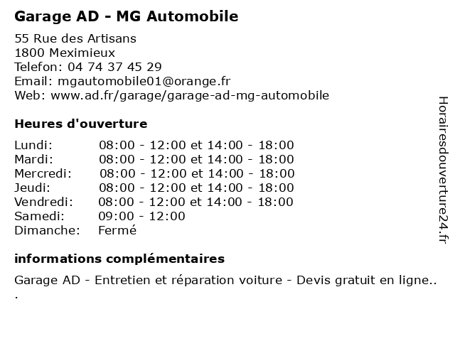 1 AD Auto Distribution (Distance: 9,28 km) . Gevrieux, 01320 Chatillon La Palud ad, auto, automobiles, concessionnaire, distribution, garage, motos 2 Carrosserie AD Calandre (Distance: 11,66 km) - ZI les Chartinières, 01120 Dagneux ad, calandre, carrosserie, courroie de distribution, devis réparation voiture, entretien auto, garage, revision voiture, réparateur voiture, réparation carrosserie, vidange 3 Sécuritest Contrôle Technique Automobile Dagneux (Distance: 11,69 km) 1011 Rue De La Craz, 01120 DAGNEUX automobile, contrôle, dagneux, sécuritest, technique 4 Garage AD Expert - Allurauto (Distance: 11,70 km) - Avenue des Pré Seigneurs, 01120 Dagneux ad, allurauto, courroie de distribution, devis réparation voiture, entretien auto, expert, garage, revision voiture, réparateur voiture, réparation carrosserie, vidange 5 Garage AD Expert - Priey Auto Service (Distance: 13,30 km) 676 Grande Rue de la Côtière, 01160 Priay ad, auto, courroie de distribution, devis réparation voiture, entretien auto, expert, garage, priay, priey, revision voiture, réparateur voiture, réparation carrosserie, service, vidange 6 AD Poids Lourds Gobillot (Distance: 14,80 km) . Zone Artisanale en Point Boeuf, 01500 Ambérieu en Bugey ad, atelier, camion, gobillot, lourds, magasin, outillage, pieces, poids, réparation |