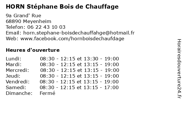 | Lundi | 08:30-12:15 et 13:30-19:00 |
