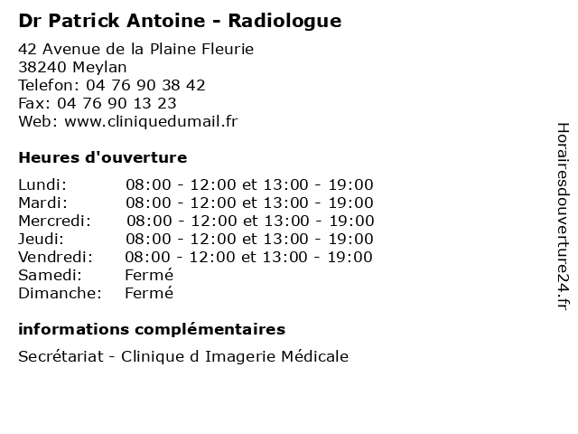 | Lundi | 08:00-12:00 et 13:00-19:00 |