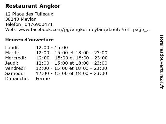 | Mardi | 12:00-15:00 et 18:00-23:00 |
