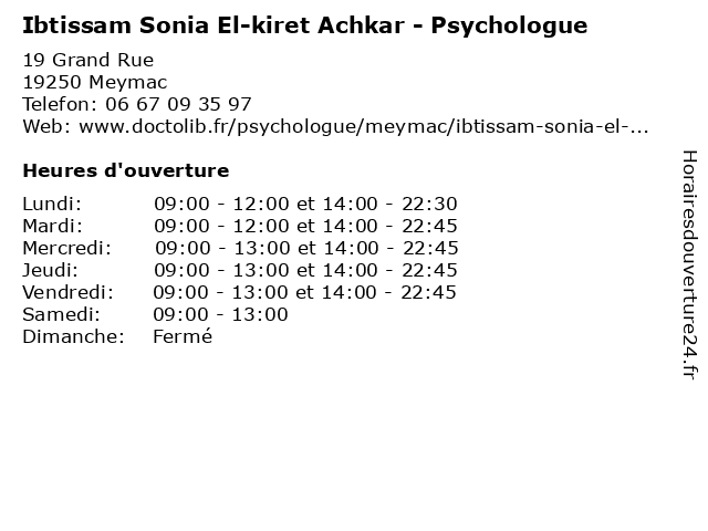 | Lundi | 09:00-12:00 et 14:00-22:30 |