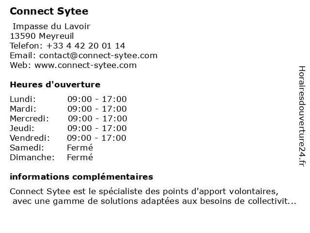 1 L'Approvisionnement Eléctrique - Sonepar Connect (Distance: 8,66 km) 280 Rue Bastide de Verdaches, 13290 Aix-en-Provence connect, construction batiment, eléctrique, fournisseur, installation electrique, l'approvisionnement, prise electrique, professionel uniquement, sonepar, sonepar group, éléctrique 2 Avelis Connect (Distance: 20,61 km) - Route de Gémenos, 13400 Aubagne avelis, connect, forfait, mobile, smartphones 6 Cabus & Raulot Connect - Groupe Sonepar (Distance: 36,56 km) - Boulevard des Ventadouiro, 13300 Salon-de-Provence bâtiment, cabus, connect, construction, groupe, installations, raulot, services, sonepar, électricité |