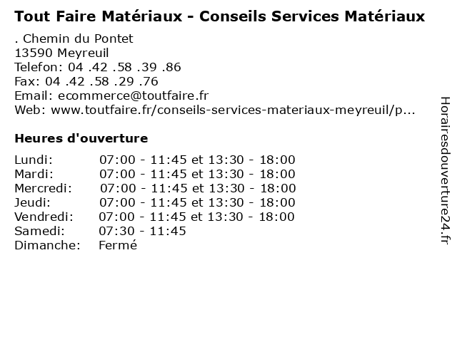 | Lundi | 07:00-11:45 et 13:30-18:00 |