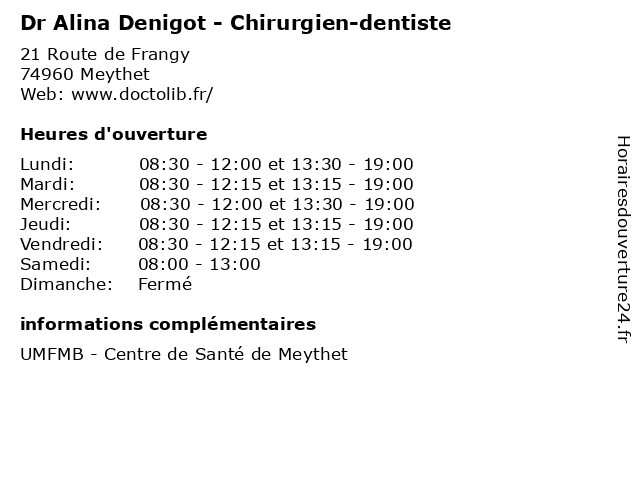 | Lundi | 08:30-12:00 et 13:30-19:00 |