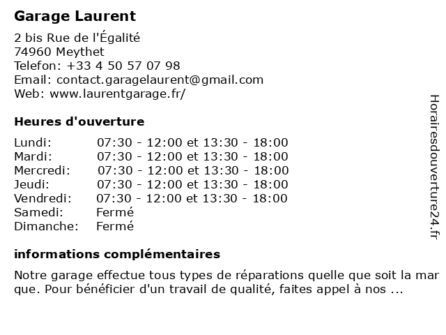 Lundi | 07:30-12:00 et 13:30-18:00 |