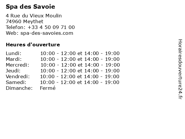 | Lundi | 10:00-12:00 et 14:00-19:00 |