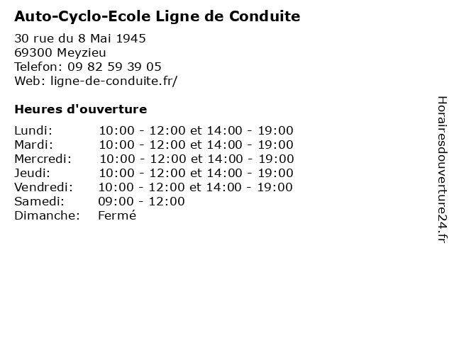| Mercredi | 10:00-12:00 et 14:00-19:00 |