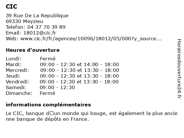 | Mercredi | 09:00-12:30 et 13:30-18:00 |