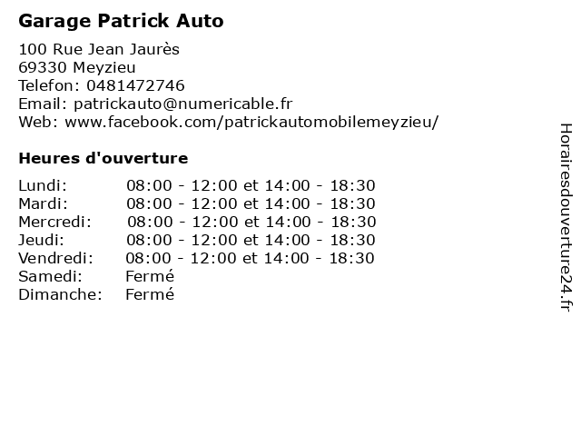 | Lundi | 08:00-12:00 et 14:00-18:30 |