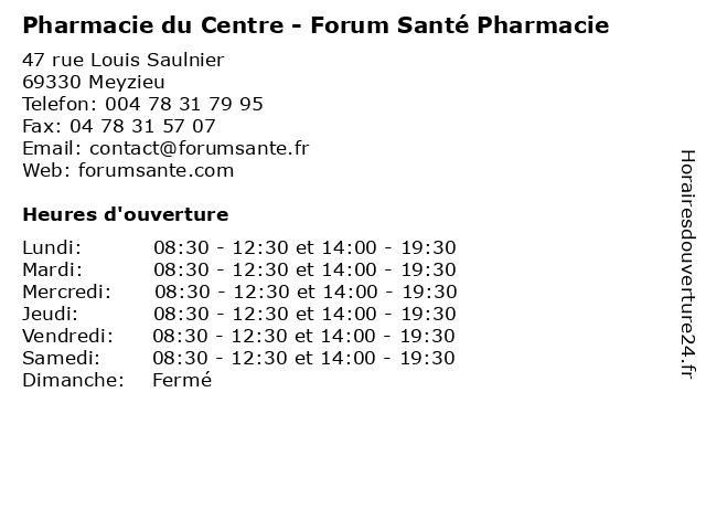 | Samedi | 08:30-12:30 et 14:00-19:30 |