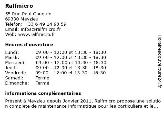 Présent à Meyzieu depuis Janvier 2011, Ralfmicro propose une solution complète de maintenance informatique pour les particuliers et les professionnels.