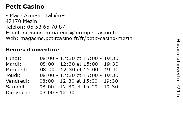 | 1 Vival by Casino (Distance: 10,90 km) 13 Cours Romas, 47600 Nerac by, casino, droguerie, d’hypermarchés, frais, fruits et légumes, hygiène, parfumerie et autres produits non alimentaires., surgelés, vival, épicerie 2 Micro-Crèche Au Petit Bonheur (Distance: 19,89 km) - lieu-dit Bellevue, 47600 Montagnac-sur-Auvignon accueil, au, bonheur, creche, crèche, enfant, garderie, micro, petit, éveil 3 Petit Casino (Distance: 26,07 km) - Place Gambetta, 47160 Damazan alimentation, casino, fruits, légumes, petit, superette, supermarché 4 Petit Casino (Distance: 32,32 km) 77 Rue Nationale, 32700 Lectoure alimentation, casino, fruits, fégumes, marché, petit, superette, épicerie 5 Vival (Distance: 36,91 km) 1 Boulevard du Nord, 32360 Jegun alimentation, distributeur alimentaire, superette, supermarché, vival, épicerie 6 Petit Casino (Distance: 39,76 km) - place de la République, 32500 Fleurance alimentation, casino, fruits, légumes, petit, superette, supermarché |