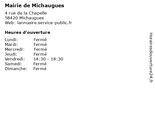 | Samedi | Fermé |