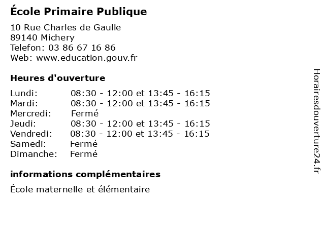 | Mardi | 08:30-12:00 et 13:45-16:15 |