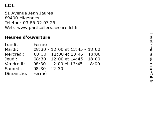 | Mardi | 08:30-12:00 et 13:45-18:00 |