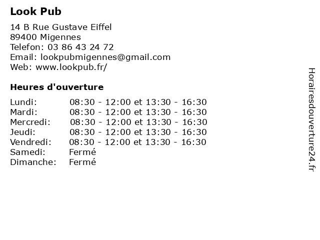 | Mardi | 08:30-12:00 et 13:30-16:30 |
