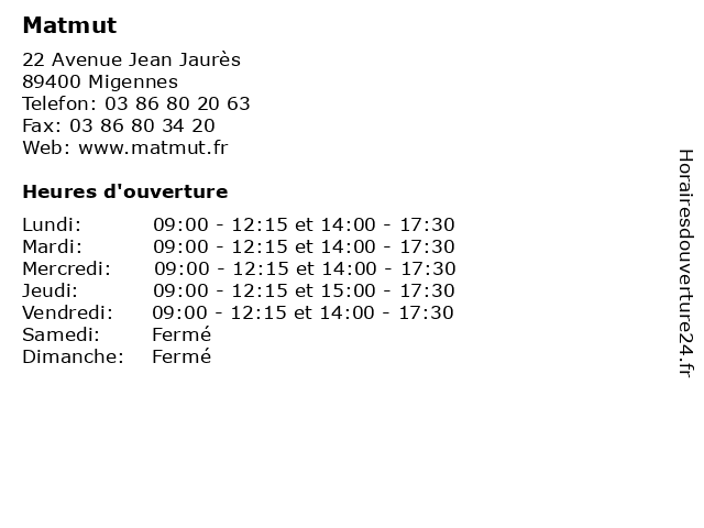 | Mardi | 09:00-12:15 et 14:00-17:30 |