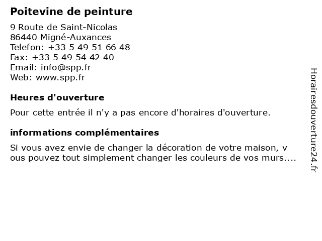 2 Chistel Jimmy Entreprises de peinture (Distance: 7,06 km) 27 Rue de Magnac, 86280 Saint Benoit appartement, chistel, de, entreprises, jimmy, maison, peintre en bâtiment, peinture, spécialiste 3 Peinture Bat (Distance: 7,60 km) 111 Avenue des Hauts de Chaume, 86280 Saint Benoit bat, coloration, maison, peinture, peinture bat 5 La Marmite Poitevine (Distance: 8,54 km) 12 Place Des Tamisiers, 86360 Montamise marmite, poitevine, restaurants 6 ENTREPRISE POITEVINE DE RENOVATION ET MA (Distance: 11,96 km) 2 Route De Poitiers, 86240 SMARVES de, entreprise, et, ma, poitevine, renovation |