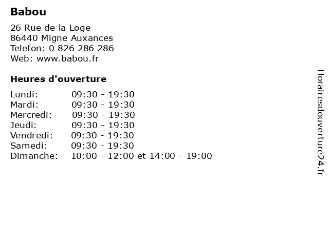 | Dimanche | 10:00-12:00 et 14:00-19:00 |