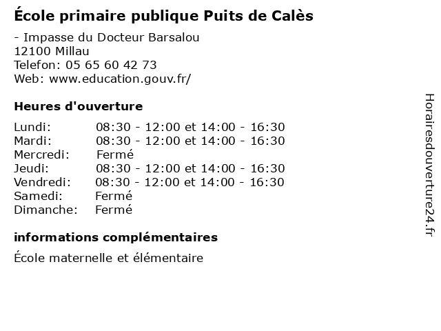 | Mardi | 08:30-12:00 et 14:00-16:30 |