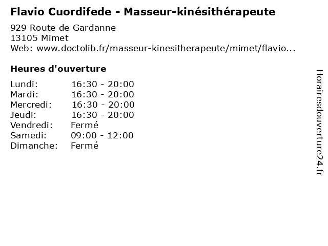 | Jeudi | 16:30-20:00 |