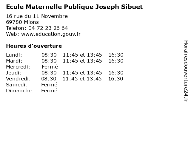 Horaires d'ouverture |