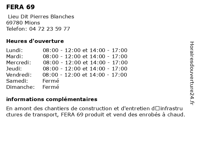 Lundi | 08:00-12:00 et 14:00-17:00 |