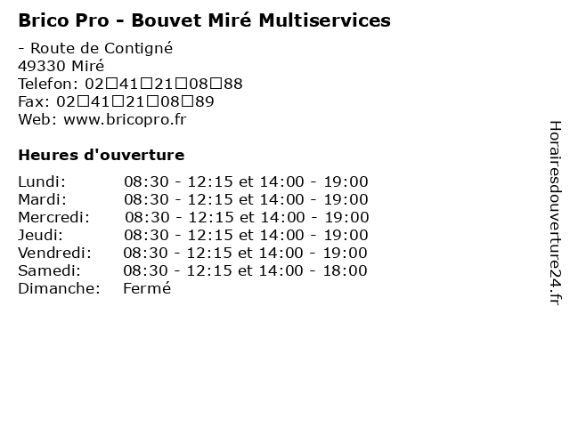 | Mardi | 08:30-12:15 et 14:00-19:00 |