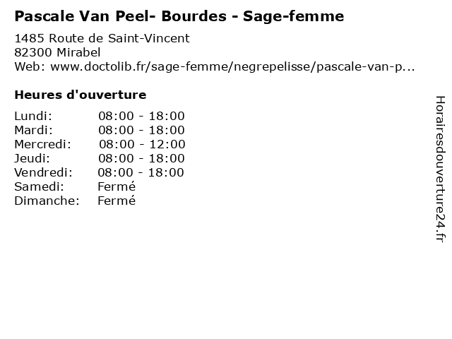 1 Pascale Van Peel-Bourdes - Sage-femme (Distance: 12,34 km) 6 Avenue Carnot, 82800 Nègrepelisse bourdes, femme, medical, pascale, peel, sage, sagefemme, van 3 Dr Pascale Dupont - Médecin généraliste (Distance: 16,99 km) - Zone Artisanale du Rival, 82130 Lafrançaise docteur, dr, dupont, generaliste, généraliste, medical, médecin, pascale, soin 4 Pascale Ramos - Sage-femme (Distance: 17,05 km) 100 rue Leon Cladel, 82000 Montauban consultation, docteur, femme, med, medecine, medical, médecin, pascale, ramos, sage, traitement 5 Chez Van (Distance: 17,68 km) 4 Rue Docteur Lacaze, 82000 Montauban boissons, café., chez, dîner, restaurant asiatique, van 6 Van Mania (Distance: 18,07 km) 755 Route du Plô, 82800 Vaissac aménagements, camping-car, concessionnaire, fourgon, mania, van |
