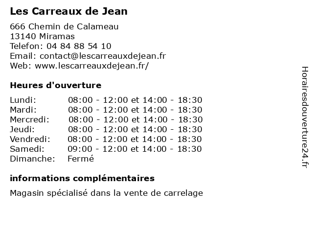 | Samedi | 09:00-12:00 et 14:00-18:30 |